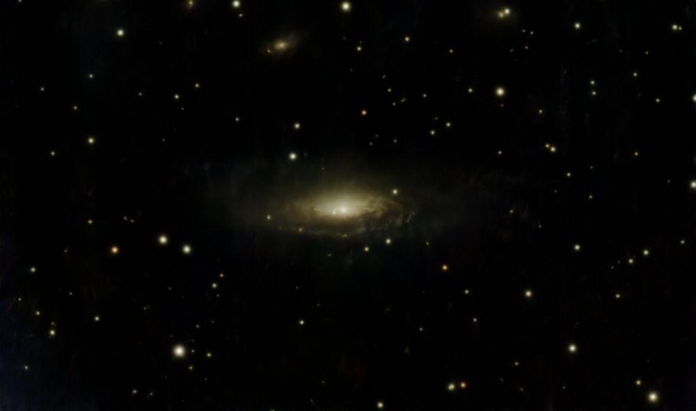Galaxy NGC 7331 and Supernova 2025rbs - discovered 14 July 2025 - located just left of the Galactic Centre, was photographed on 6th September 2025, from my back garden in Gorleston through its Bortle 6 sky. A total of 126 x 30sec. subs at 300 gain, were logged from an Altair 26C cooled colour camera and Baader Contrast Booster Filter. The telescope was an AVX mounted Celestron 8 inch SCT, guided with PHD2 software linked to a ASI224 on a small guide scope. SharpCap was used to control the recording sequence and PixInsight for the stacking and processing stages. The low gain and short exposure solved the problem of an earlier failed attempt where higher settings had saturated the galaxy's central area and obliterated the supernova. I understand that the light from this exploding white dwarf star took some 45 million years to reach my back garden - so we're basically seeing a 63 minute image of the event as it happened during the Earth's warmer Eocene Epoch.